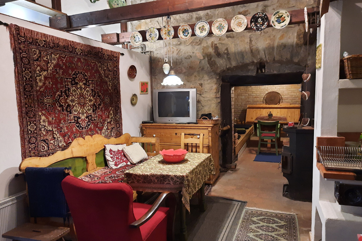 gázfűtéssel ellátott és van egy hangulatteremtő vaskályha is